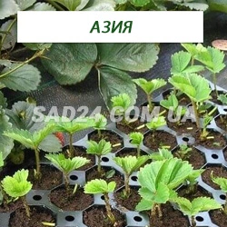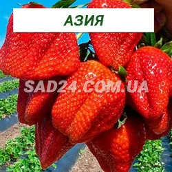 Азія – нова перспективна полуниця промислового вирощування, селекція Італія. Цей сорт садової суниці відноситься до ранньо-середніх сортів. Збирання врожаю з перших чисел червня. Кущ з потужним листовим апаратом яскраво-зеленого забарвлення, розлогий. Квітконоси міцні, високі. Ягоди конусоподібні, великі, середньою масою близько 40 - 50 г і більші. Поверхня блискуча, яскраво-червоного забарвлення. М'якуш щільний, світло-червоний, високих смакових якостей, дуже ароматний, із суничним присмаком. Висока врожайність, 600-800г з куща, і більше. Плодоношення тривале, розтягнуте на 3 тижні. Транспортабельність висока, добре переносить тривале транспортування. Сорт Азія придатний для вирощування як у відкритому ґрунті, так і в теплицях. Розсаду висаджується в осінній та весняний період.