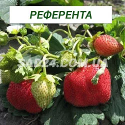 Полуниця Референта - ремонтантна полуниця (безперервного плодоношення) плодоносить все літо до заморозків, ягода велика. Колір темно-червоний, ягоди великі вага 30-40 г, м'якоть щільна, форма плодів овально-конічна. Референта відрізняється потужними кущами з великим темно-зеленим листям. Дає міцні квітконоси. Зимостійкість висока, стійка до шкідників та хвороб. Починає плодоносити на рік посадки. Високоврожайний сорт полуниці! Референта підходить для вирощування в домашніх умовах!