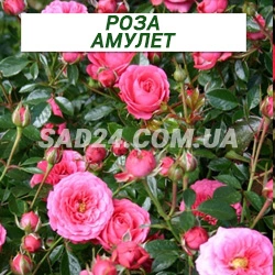 Сорт троянди Амулет німецького виробництва. Це мініатюрна троянда чи патіо. Примітно розташування пелюсток, вони зібрані по колу, на кшталт хризантеми. Забарвлення суцвіть густо пуншеве, світлішає на сонці. Ці трояндочки цвітуть кистями. У пензлі буває до 20 густомахрових суцвіть. Діаметр квітки невеликий, всього 5 див. . Сорт Амулет дуже невибагливий, стійкий до борошнистої роси та чорної плямистості. Троянди Амулет чудово підійдуть для покращення дизайну ландшафту на присадибній ділянці. Вони підходять для бордюрів, гірок, клумб. Невибагливий Амулет витримує вітри та дощі.