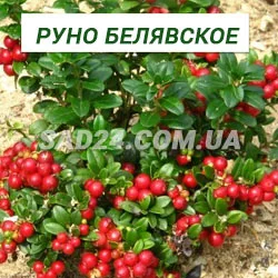 Брусниця Руно Білявське – Високоурожайний сорт виведений Польськими селекціонерами. Це багаторічний, низький, вічнозелений, напівчагарник, що гілкується. Діаметр крони до 35 см. Плоди великі, округлі, темно-червоного кольору, тонка шкірка. Дозрівання плодів починається у серпні та триває до жовтня. Ягоди мають високі смакові якості. Смак кисло-солодкий. Брусниця містить безліч вітамінів, мінеральних речовин та органічних кислот. У народній медицині брусниця відома як тонізуючий, ранозагоювальний, жарознижувальний, протицинготний і протиавітамінозний засіб. Ягоди придатні для вживання у свіжому вигляді, заморозки та перебирання (морсів, компотів).