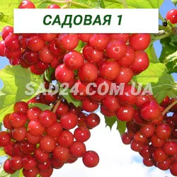 Калина червона Садова 1 - відмінний сорт калини раннього терміну дозрівання. Кущ середньої сили зростання, у висоту досягає 3 м, крона компактна, зібрана. Ягоди калини великі до 0,7 – 0,8 гр. насичено-червоного забарвлення, кулястої форми, кислосолодкого приємного смаку, без гіркоти. Врожайність висока та регулярна, в середньому 7-15 кг з куща. Сорт калини стійкий до основних захворювань, висока морозостійкість.