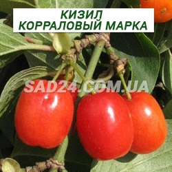 Кораловий Марка кизил ранній з красивими та дуже смачними плодами, морозостійкий сорт кизилу з красивою пірамідальною кроною.