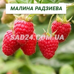 Малина Радзієва ранній сорт дозрівання, урожай збирають у другій половині червня. Врожайність хороша. Кущі досягають від 1,7 до 1,9 м, розлогі з міцними пагонами на яких нечисленні м'які шипи, листя світло-зеленого кольору, широкоовальної форми. Розмір ягоди досягає ваги 6-8 г .