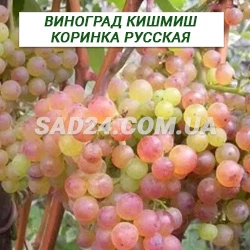 Коринка російська кишмишний сорт винограду, раннього терміну дозрівання 110 днів. Кетяги середнього розміру, з помірною щільністю. Ягоди, ніжні із жовто-зеленим відтінком, з невеликою засмагою на сонці. Добре підходить для сушіння родзинок. Морозостійкість до -25С.