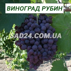 Виноград Рубін - технічний сорт середнього періоду дозрівання. Кущі середньорослі. Лист середній, середньо-або сильнорозсічений, п'ятилопатевий, неопушений. Листова поверхня блюдцеподібна, гладка. Черешкова виїмка відкрита. Квітка двостатева. Кетяги середні, конічні, щільні. Ягоди дрібні, круглі, чорні, вкриті рясним восковим нальотом. М'якуш соковитий, гармонійного смаку. Шкірка міцна. У Болгарії накопичує 23-25% цукру, родзинки ягоди можуть досягати цукристості 30%. Дозрівання пагонів хороше. Висока врожайність. Стійкість сорту винограду Рубін до сірої гнилі висока. Рубін придатний для виготовлення високоякісних червоних вин.