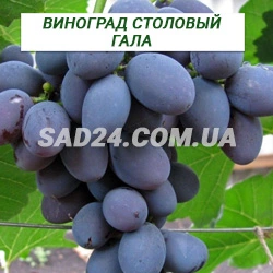 Гала - дуже сильнорослий. Лист великий. Квітка двостатева. Кетяги великі, масою 500-900 грам, окремі до 2 кг, помірно щільні, циліндроконічні. Горошення не спостерігалося. Ягоди сині, овальної форми, великі, 7-9 г, окремі досягають ваги 12 гам. М'якуш м'ясистий, гармонійного смаку. Цукористість ягід 16,5 % при кислотності 6,8 г/л.