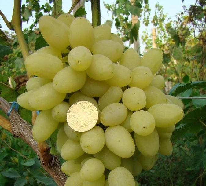 Ягоди овальні, середня маса 10-14г, жовтого кольору, гармонійного, приємного смаку. М'якуш щільний, шкірка легко з'їдається.