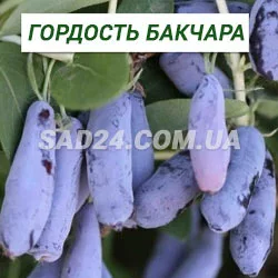Кущ у сорту "Гордість Бакчара" середньорослий до 1,6 м заввишки, середньої густоти, розлогої стогоподібної форми. Скелетні гілки аркоподібні, верхні нависають над нижніми. Однорічні гілки часто «плакучі», зелені. Молоді пагони тонкі, вигнуті. Ягоди дуже великі — 4—5 см завдовжки і до 1,0 см завширшки, масою від 1,2 до 2,3 г, серпоподібні, гладкі фіолетові з сильним восковим нальотом. Шкірка середня, транспортабельність ягід хороша. Дозрівання середньо-пізнє, розтягнуте. Обсипаність ягід сильна, збір можна проводити шляхом обтрушування і два прийоми. Врожайність 2,6-3,6 кг з куща на 8 рік життя куща.