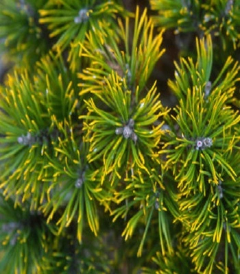 Хвоя влітку зелена, після заморозків стає оранжево-жовта. Зимове