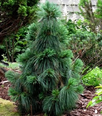 Напівкарликовий,повільно зростаючий сорт сосны, з симетричною,