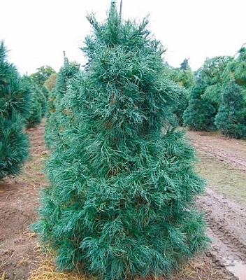 Швидкозростаюча сосна, пірамідальної форми. Особливістю сорту є