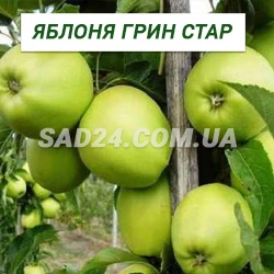 Плоди зеленого забарвлення, без рум'янцю, середніх розмірів, до 200 грам, поступово дозрівають наприкінці вересня-початку жовтня. Грін Стар сорт яблуні Бельгійської селекції отримано від схрещування Делькорф з Грані Сміт, , стійкий до парші.