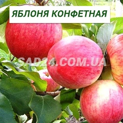 Яблука сорту невеликі, середньою вагою близько 100 грамів. Шкірка кремово-жовта, з рожевим або червонуватим рум'янцем. М'якуш їх білий, ніжний, соковитий і дуже солодкий, з характерним цукерковим присмаком, який і дав назву сорту. Найчастіше плоди їдять свіжими, особливо люблять ранні солодкі яблучка діти. Зберігаються дуже недовго, як і всі літні сорти.